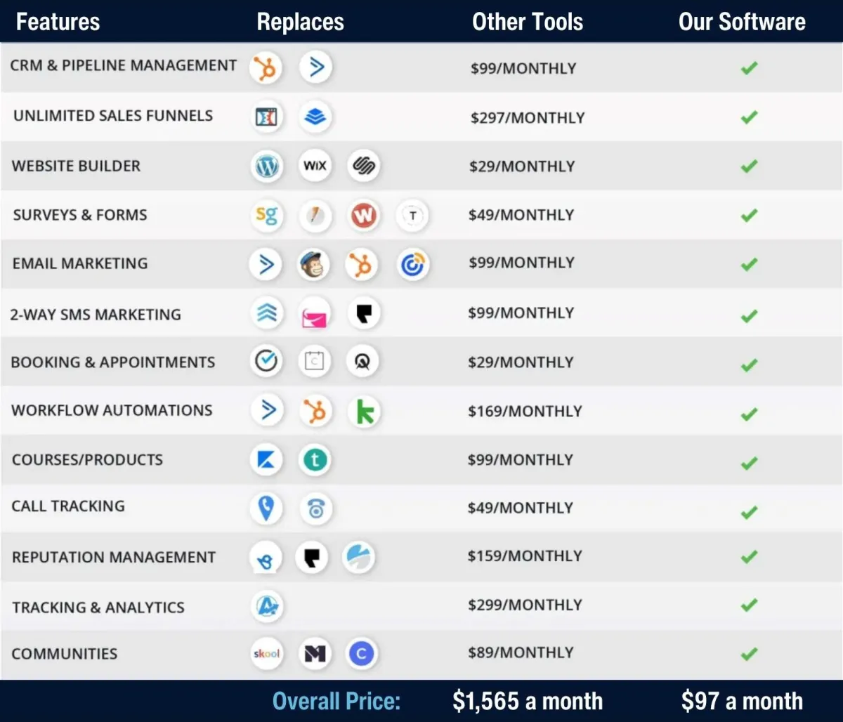 Alongside with all of the tools you need in order to build an effective personal brand. Think: funnels, SMS listing building, email marketing, social media planner, etc.